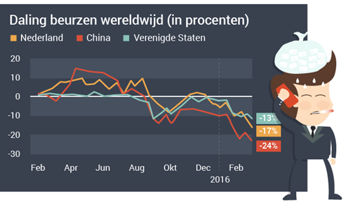 Voor het vierde kwartaal op rij groeide de Nederlandse economie, zo meldde het CPB recent. Ook voor de rest van het jaar zijn de vooruitzichten rooskleurig. Op de aandelenbeurs is niks van dit positivisme te merken. Voor beleggers in Nederlandse aandelen verloopt 2016 vooralsnog dramatisch. Waar komt die beursonrust vandaan en valt verbetering te verwachten?