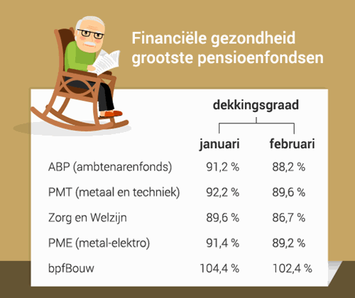 De financiële situatie bij pensioenfondsen als ABP en Zorg en Welzijn is in februari verder achteruit gegaan. Met de huidige rente als maatstaf, hebben ze te weinig inkomsten voor jouw toekomstige pensioenuitkering. Dit vereist straffe maatregelen.