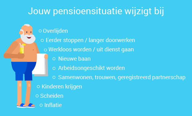 Niet alleen de prestaties van het pensioenfonds hebben invloed op jouw pensioen. Een andere baan, het krijgen van kinderen of eerder willen stoppen met werken. Allemaal zaken die je pensioensituatie beïnvloeden. Voor sommige kun je zelf kiezen, in tegenstelling tot bijvoorbeeld arbeidsongeschiktheid. Het is aan te raden op Mijnpensioenoverzicht.nl te lezen wat wijzigingen in je situatie betekenen voor zowel jou als eventuele partner en kinderen.