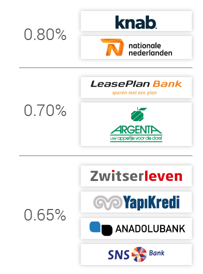 Zet je jouw spaargeld twee jaar vast, dan ontvang je bij de bank Yap Kredi en DHB bank 1,15 procent rente. Dezelfde aanbieders verstrekken ook bij een termijn van drie jaar de hoogste rente, namelijk 1,25 procent.