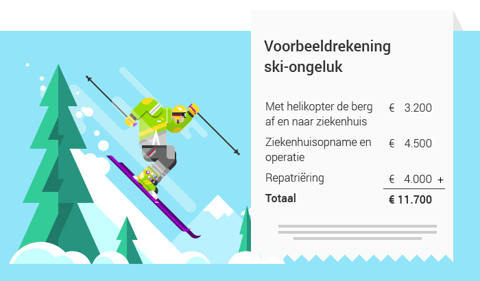 Een hobbel die je niet hebt gezien of de bocht die toch scherper was dan je dacht. Met wintersporten is de kans op een val op de piste of een blessure groter dan bij de gemiddelde zonvakantie. De blessure zelf is al vervelend genoeg, vervolgens loop je ook nog het risico op een hoge rekening voor de geleverde zorg.