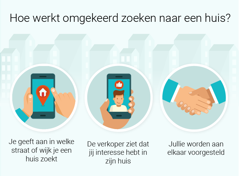 Hoewel de sites verschillend zijn, is het principe hetzelfde. Je geeft als koper op een kaart aan waar je graag wil wonen. Dat kan heel specifiek in één bepaalde straat. Meer kans maak je met het selecteren van een hele wijk. Woont er iemand in die wijk met sluimerende verhuisplannen, dan kan jouw interesse de reden zijn om het huis aan te bieden. Na het uitwisselen van contactgegevens spelen de sites geen rol meer in het proces.