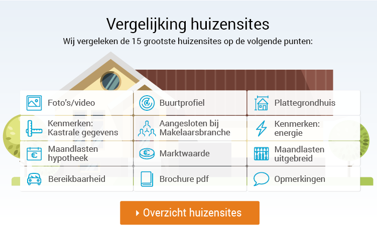 Uit alle woningen in Nederland precies hét huis vinden dat bij je past is niet eenvoudig. We maken het je gemakkelijker door de onderstaande 15 grootste huizensites te vergelijken. Het totaaloverzicht kun je via deze link bekijken.