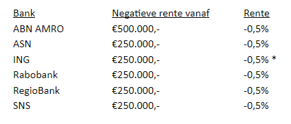 Negatieve spaarrente grootste banken