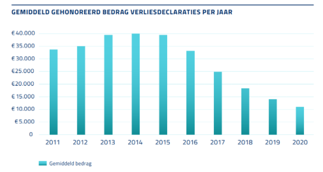 Op dit moment breekt de huizenprijs record na record. Door de relatief hoge prijs is de kans kleiner dat een gedwongen verkoop te weinig oplevert voor het voldoen van de nog openstaande hypotheekschuld. Dit is terug te zien in de cijfers. Vorig jaar keerde NHG €11.443 uit per goedgekeurde aanvraag. Fors minder dan in de jaren na de crisis, met als toppunt een gemiddelde van tegen de €40.000 in 2014.