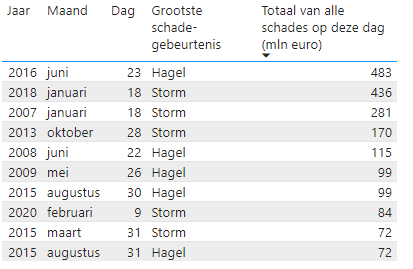 Grootste weerschade op dagbasis sinds 2007